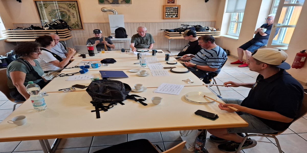 Am gestrigen Samstag traf sich unsere Drumline zu einem Workshop in unserem Vereinsheim. Der Tag begann mit einem reichhaltigen Frühstück für die Teilnehmer und Coaches. Tagsüber wurde fleißig geübt, Neues erarbeitet, an den Noten gefeilt und an alten Fehlern gearbeitet. Nach dem Mittagssnack kamen dann noch einige Piper hinzu, um den Drummern beim Einspielen die passenden Melodien zu liefern. Letztendlich war es ein sehr gelungener, lehr- sowie ergebnisreicher Tag, der definitiv wiederholt wird.